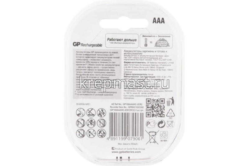 Батарейка GP Accu AAА аккумул. 1000ma в интернет-магазине «Мастер Крепежа» по цене 389 руб. Более 8 наименований товаров в наличии в категории Батарейки для зарядных устройств / ЗУ . Купить батарейка gp accu aaа аккумул. 1000ma в Чистополе выгодно Вы можете on-line на нашем сайте, или отправив заявку по почте, а также по телефону или в пункте выдачи компании г. Казань, ул. Татарстан, 9, магазин "Мастер Крепежа". Доставка по Республике Татарстан и другие регионы РФ.