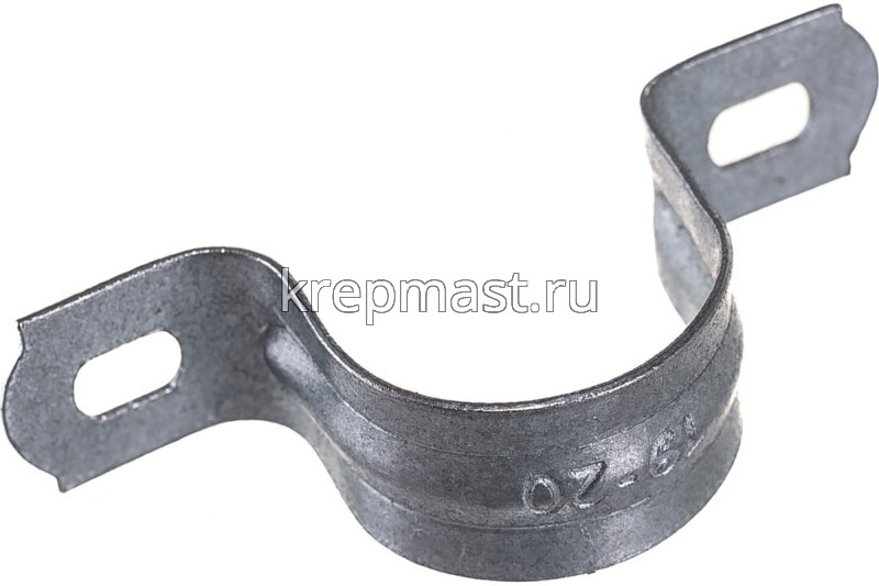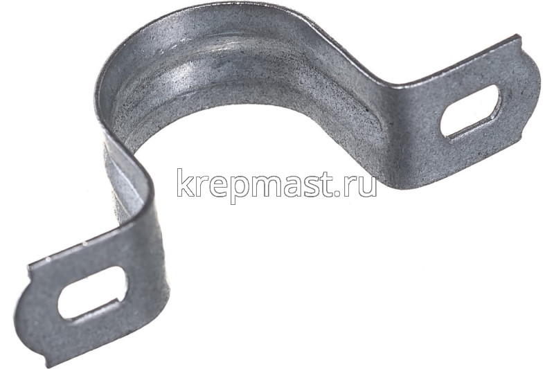 Металлическая скоба двухлпаковая 19-20 мм крепёжная деталь в виде изогнутой металлической полосы, усиленная ребром жесткости с крепежными отверстиями по краям. Скоба оцинкованная с двойным отверстием выполнена из оцинкованной стали для стойкости к атмосферным осадкам.