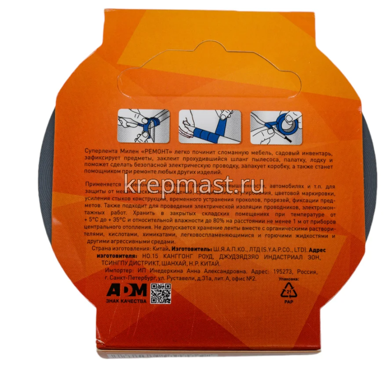 Суперлента д/ремонт.работ 48х10м Милен Ремонт применяется в бытовых работах, промышленности для защиты от механических повреждений, сращивания, жгутирования, цветовой маркировки, усиления стыков конструкций, фиксации предметов. Лента подходит для проведения электрической изоляции проводов, электромонтажных работ.
