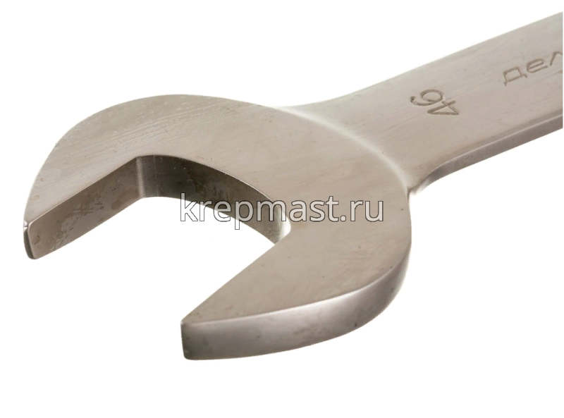 Рожковый усиленный ключ 46 х 50 мм изготовлен из инструментальной стали, прошел термообработку. Гаечный ключ имеет хромированное покрытие.