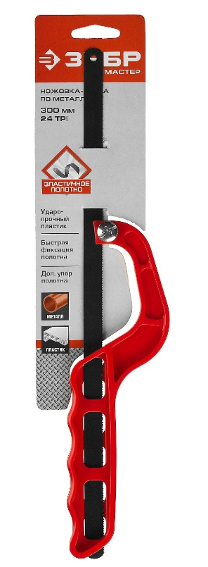 Ножовка-ручка по металлу 300 мм ЗУБР удобна в использовании за счет небольших размеров. Это облегчает доступ к заглубленным деталям. Жесткая фиксация полотна облегчает продолжительную работу и снижает вероятность разлома.