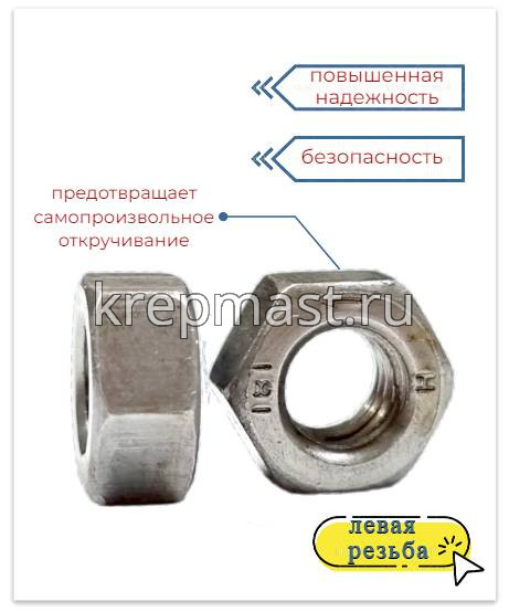 Гайка 6-гр. М 6 (1,0) DIN 934 левая резьба (LH)