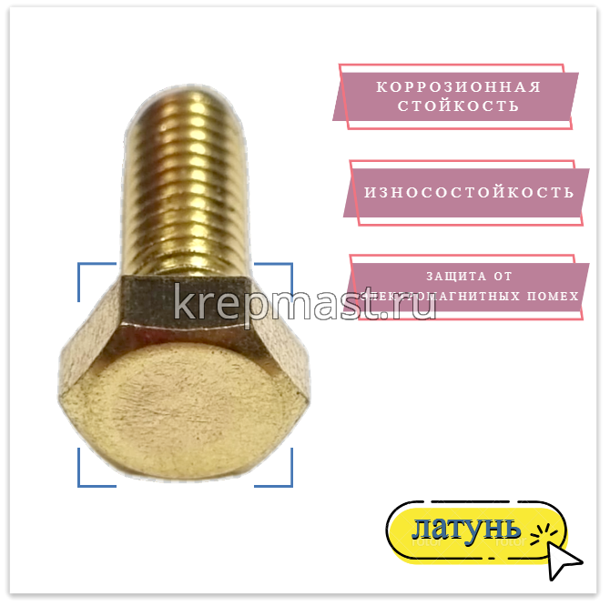 Болт 6х16 DIN 933 латунь в интернет-магазине «Мастер Крепежа» по цене 46 руб. Более 26 наименований товаров в наличии в категории Болты латунные DIN 933. Купить болт 6х16 din 933 латунь в Чистополе выгодно Вы можете on-line на нашем сайте, или отправив заявку по почте, а также по телефону или в пункте выдачи компании г. Казань, ул. Татарстан, 9, магазин "Мастер Крепежа". Доставка по Республике Татарстан и другие регионы РФ.