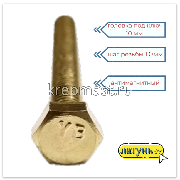 Латунный болт DIN 933 М6 х 50 используется в случае, когда необходимо создать немагнитный узел. Латунный болт М6 применяется в приборостроении, авиации, атомной промышленности. Латунный крепеж стоек к органическим кислотам и углекислым растворам.