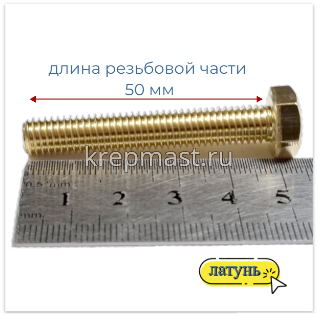 Болт 8х50 DIN 933 латунь в интернет-магазине «Мастер Крепежа» по цене 306 руб. Более 26 наименований товаров в наличии в категории Болты латунные DIN 933. Купить болт 8х50 din 933 латунь в Чистополе выгодно Вы можете on-line на нашем сайте, или отправив заявку по почте, а также по телефону или в пункте выдачи компании г. Казань, ул. Татарстан, 9, магазин "Мастер Крепежа". Доставка по Республике Татарстан и другие регионы РФ.