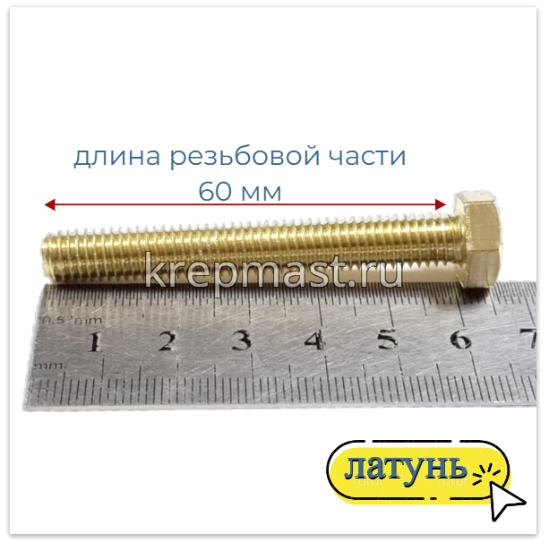 Болт 8х60 DIN 933 латунь в интернет-магазине «Мастер Крепежа» по цене 350 руб. Более 26 наименований товаров в наличии в категории Болты латунные DIN 933. Купить болт 8х60 din 933 латунь в Чистополе выгодно Вы можете on-line на нашем сайте, или отправив заявку по почте, а также по телефону или в пункте выдачи компании г. Казань, ул. Татарстан, 9, магазин "Мастер Крепежа". Доставка по Республике Татарстан и другие регионы РФ.