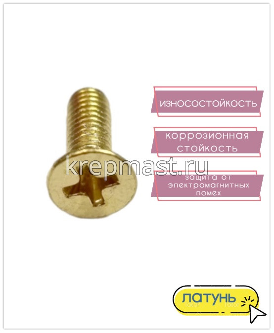 Винт потай 4,0 х12 DIN 965 латунь в Чистополе