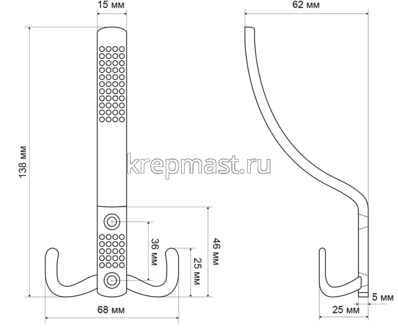 Крючок 212 А WW матовый белый СТАНДАРТ