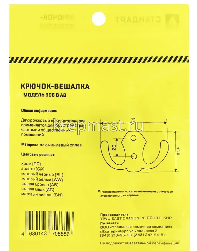 Крючок 306 В WW матовый белый СТАНДАРТ в интернет-магазине «Мастер Крепежа» по цене 120 руб. Более 12 наименований товаров в наличии в категории Крючок-вешалка. Купить крючок 306 в ww матовый белый стандарт в Чистополе выгодно Вы можете on-line на нашем сайте, или отправив заявку по почте, а также по телефону или в пункте выдачи компании г. Казань, ул. Татарстан, 9, магазин "Мастер Крепежа". Доставка по Республике Татарстан и другие регионы РФ.