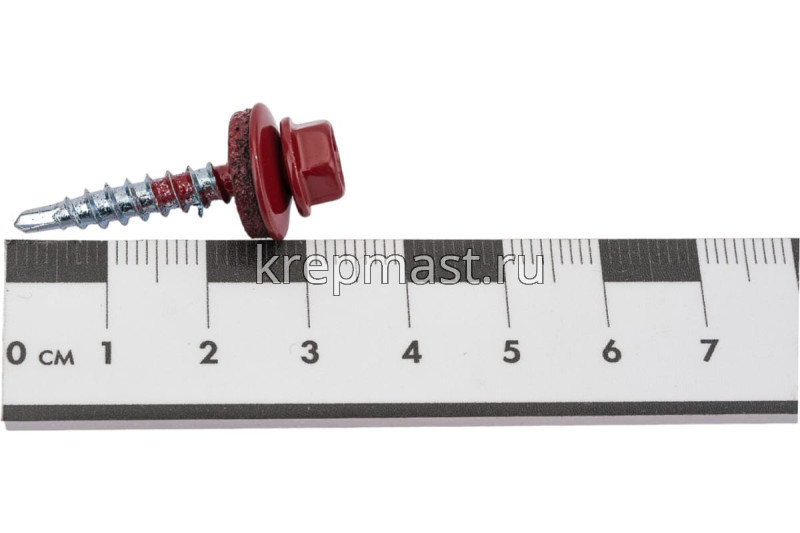Кровельный саморез окрашенный с шайбой и резиновой прокладкой EPDM DIN 7504 4,8 х 29 по дереву RAL 3011 (цвет красно-коричневый) - представляет из себя саморез с шестигранной головкой, фланцем и резиновой прокладкой для эффективного прижатия листового металла к основанию.