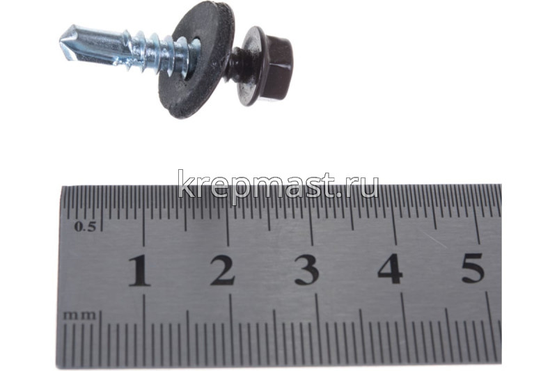 Кровельный саморез окрашенный с шайбой и резиновой прокладкой EPDM DIN 7504 5,5 х 25 по металлу RAL 8017 (цвет шоколадно - коричневый) - представляет из себя саморез с шестигранной головкой, фланцем и резиновой прокладкой для эффективного прижатия листового металла к основанию.