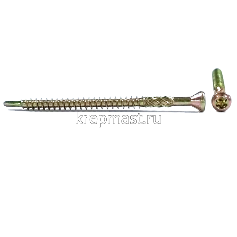 Шурупы для массивной доски оснащаются укороченной головкой, резьбой с мелким шагом и специальным наконечником, что позволяет минимизировать образование трещин в изделиях из древесины любой толщины.