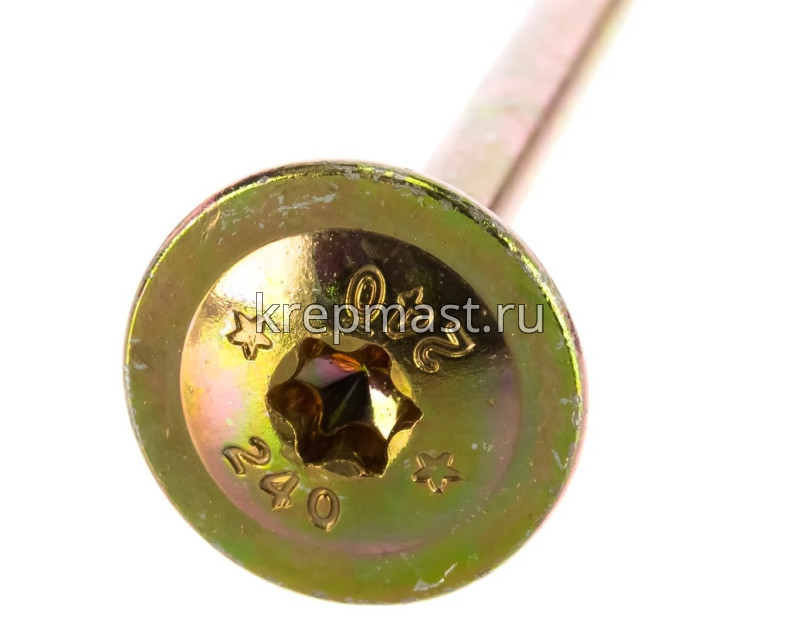 Конструкционный саморез по дереву с пресс шайбой 8,0 х 240,0 совершает в одно движение такие операции, как накернивание, засверливание, зенковка и вворачивание.