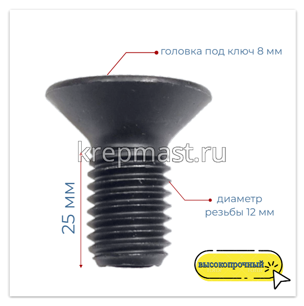 Винт с внут. шестиг. потай голов. 12х 25 кл.пр.10,9 DIN 7991 ЧЕРНЫЙ в интернет-магазине «Мастер Крепежа» по цене 42 руб. Более 10 наименований товаров в наличии в категории Винт DIN 7991 с внутр.шестигр. (потай) 12мм. Купить винт с внут. шестиг. потай голов. 12х 25 кл.пр.10,9 din 7991 черный в Чистополе выгодно Вы можете on-line на нашем сайте, или отправив заявку по почте, а также по телефону или в пункте выдачи компании г. Казань, ул. Татарстан, 9, магазин "Мастер Крепежа". Доставка по Республике Татарстан и другие регионы РФ.