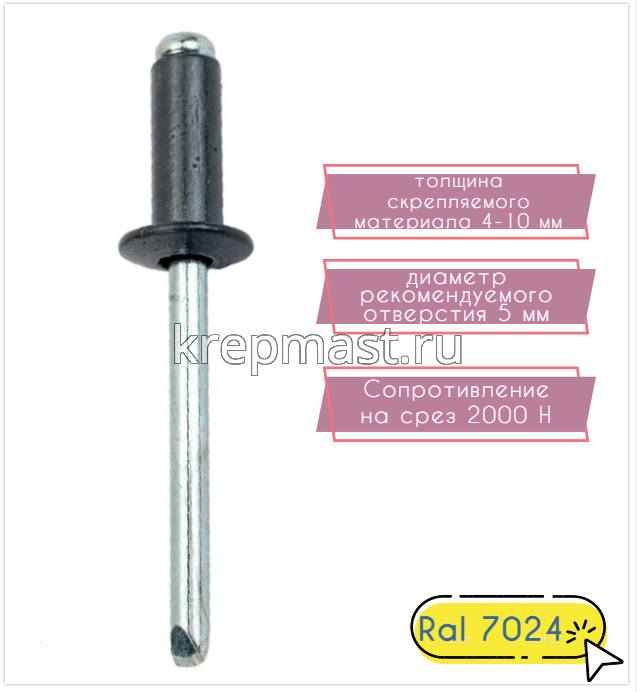 Заклёпка алюминий/сталь 4,8х12 RAL 7024 в Чистополе