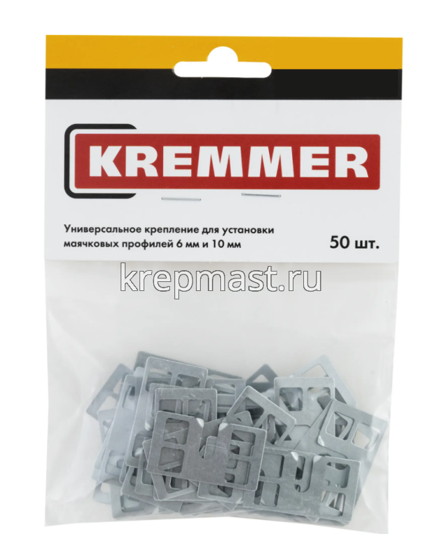 Крепление для установки маячковых профилей Креммер KR-050 (50 шт) значительно ускоряет и облегчает проведение отделочных работ. Благодаря точности установки профилей достигается существенная экономия стройматериалов.