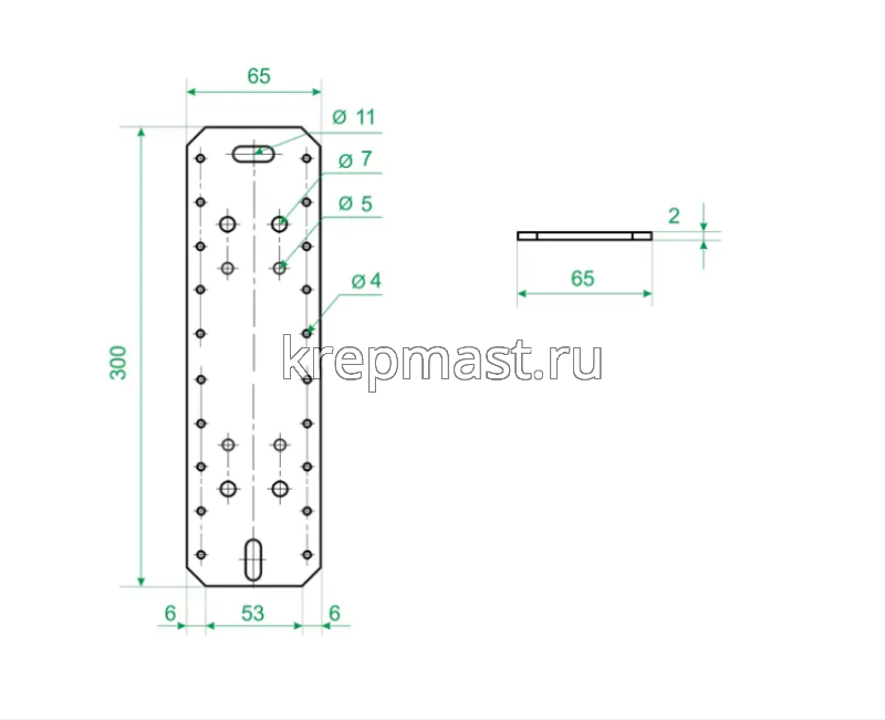 LP 4 крепление плоское 300х65х2,0мм применяется для соединения и упрочнения конструкций при помощи нескольких дюбелей, анкеров, саморезов.