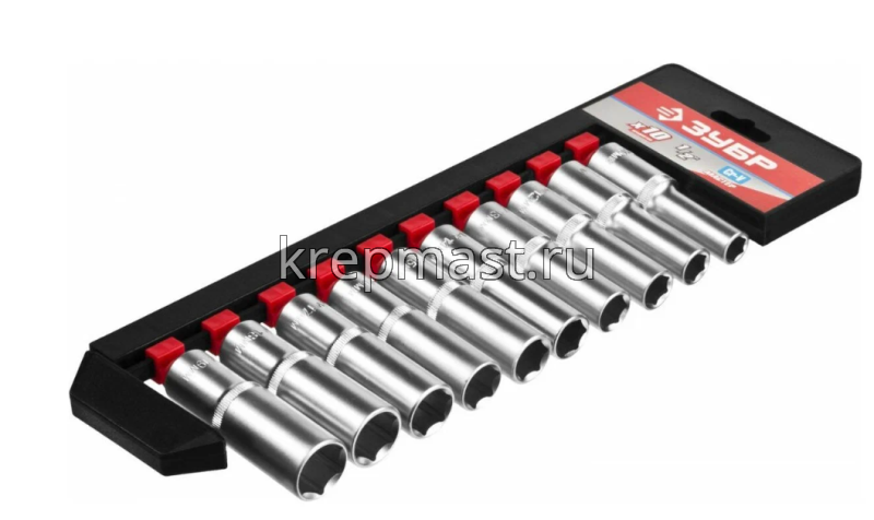 Набор ЗУБР головок торцевых удлиненные 1/2" (10-19мм) 10пред. в Чистополе