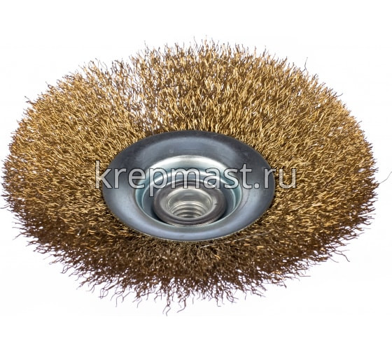 Дисковая щетка с наклоном 125 мм является сменным элементом для углошлифовальных . Применяется для зачистки от лака, краски и ржавчины различных поверхностей и изделий. Рабочая часть состоит из стальной проволоки с латунным покрытием.