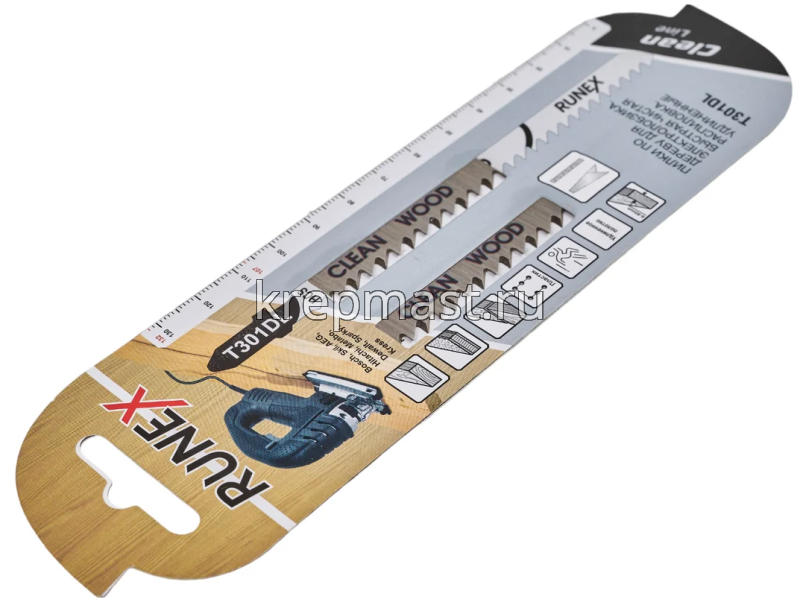 Пилки для электролобзика RUNEX Т 301 DL 132мм подходят для быстрого распила дерева и фанеры, толщиной от 8 до 60 мм.