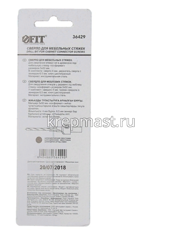 Сверло FIT предназначено для сверления в изделиях из древесины отверстий под мебельную стяжку «конфирмат» размером 5х50 мм.