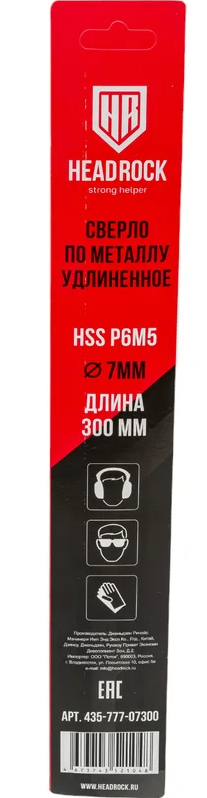 Удлиненное сверло по металлу М 7,0 x 300 мм изготовлено из быстрорежущей стали Р6М5. Сверло шлифованное и имеет цилиндрический хвостовик. Подходит для сверления цветных металлов. Угол заточки при вершине — 135 градусов, а класс точности — А1.