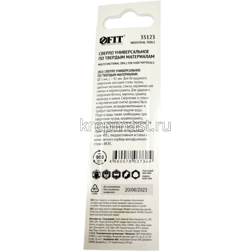 Сверло универсальное 5х85мм (сталь, чугун, цв.мет, стекло, керамогранит) в интернет-магазине «Мастер Крепежа» по цене 145 руб. Более 13 наименований товаров в наличии в категории СВЕРЛА универсальные (опалубочные). Купить сверло универсальное 5х85мм (сталь, чугун, цв.мет, стекло, керамогранит) в Чистополе выгодно Вы можете on-line на нашем сайте, или отправив заявку по почте, а также по телефону или в пункте выдачи компании г. Казань, ул. Татарстан, 9, магазин "Мастер Крепежа". Доставка по Республике Татарстан и другие регионы РФ.
