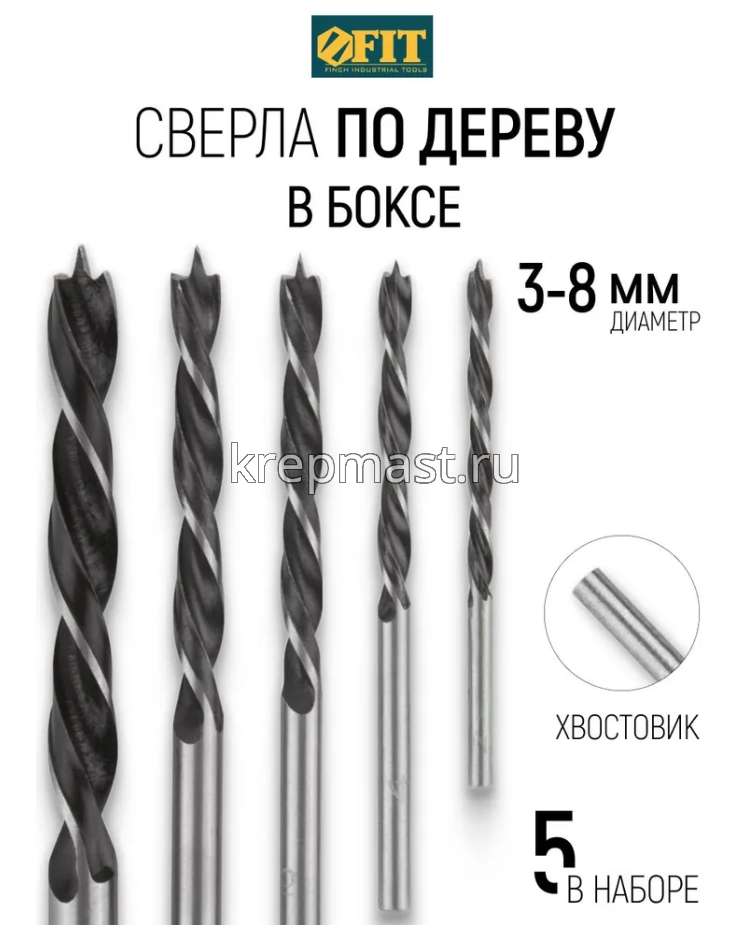 Набор сверел по дереву 5шт спираль FIT (3-4-5-6-8мм) в Чистополе