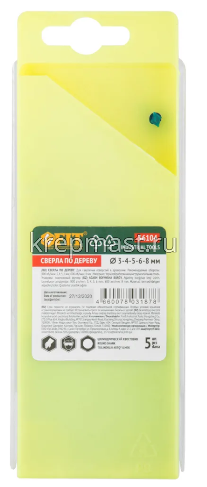 Набор сверел по дереву 5шт спираль FIT (3-4-5-6-8мм) в интернет-магазине «Мастер Крепежа» по цене 266 руб. Более 27 наименований товаров в наличии в категории СВЕРЛА НАБОРЫ. Купить набор сверел по дереву 5шт спираль fit (3-4-5-6-8мм) в Чистополе выгодно Вы можете on-line на нашем сайте, или отправив заявку по почте, а также по телефону или в пункте выдачи компании г. Казань, ул. Татарстан, 9, магазин "Мастер Крепежа". Доставка по Республике Татарстан и другие регионы РФ.