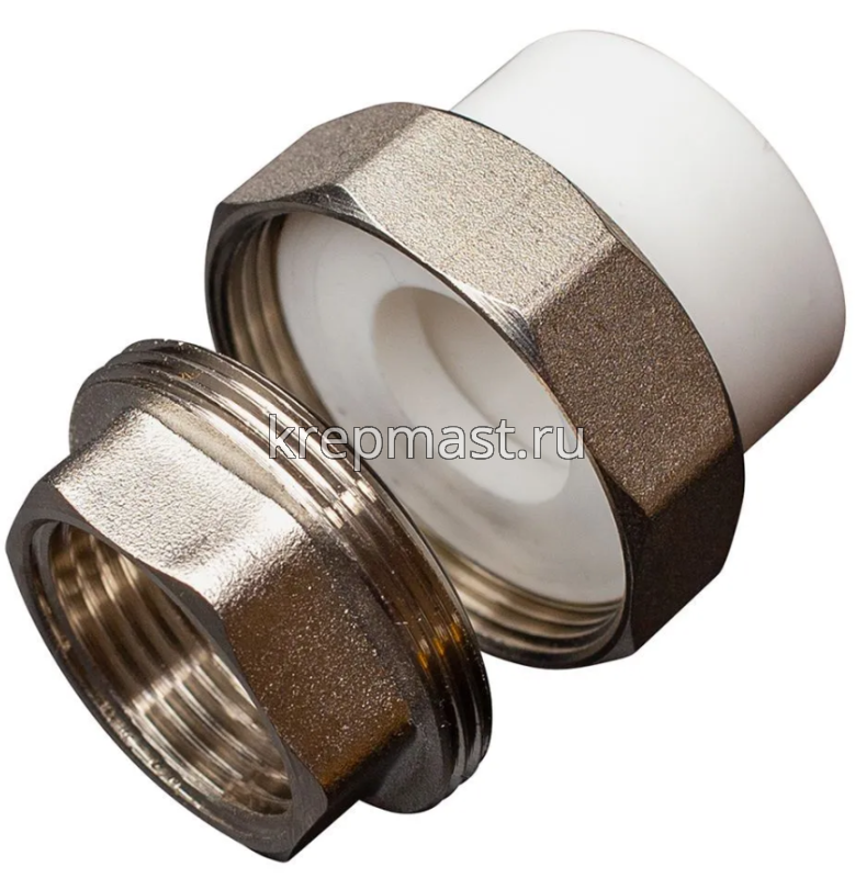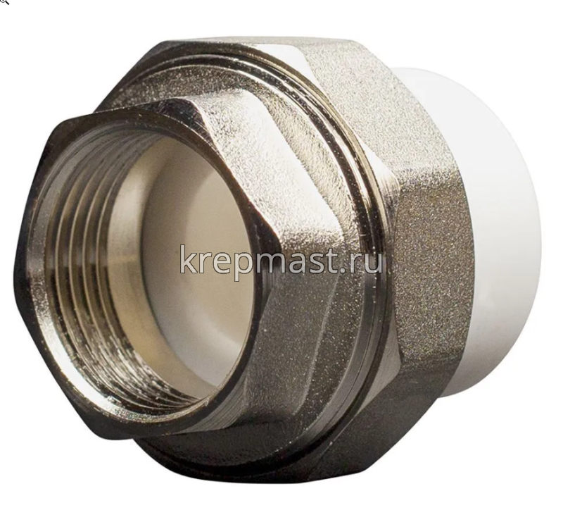 Комбинированная разъемная муфта (американка) ВР D 32- 1 п/п - разъемная муфта состоит из двух элементов, один из которых приваривается к полипропиленовой трубе посредством раструбной сварки, другой - соединяется с оборудованием или арматурой при помощи трубной резьбы.