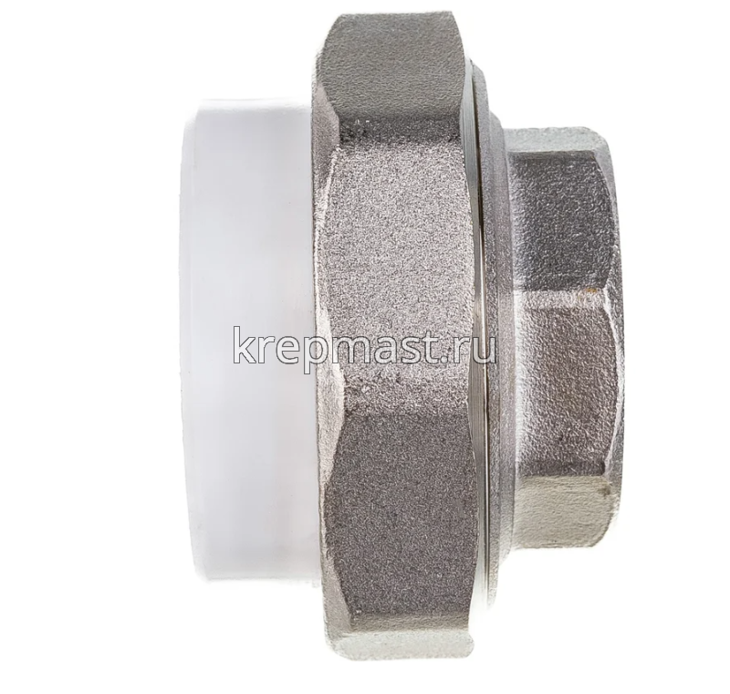 Комбинированная разъемная муфта (американка) ВР D 50-1 1/2 п/п - разъемная муфта состоит из двух элементов, один из которых приваривается к полипропиленовой трубе посредством раструбной сварки, другой - соединяется с оборудованием или арматурой при помощи трубной резьбы.