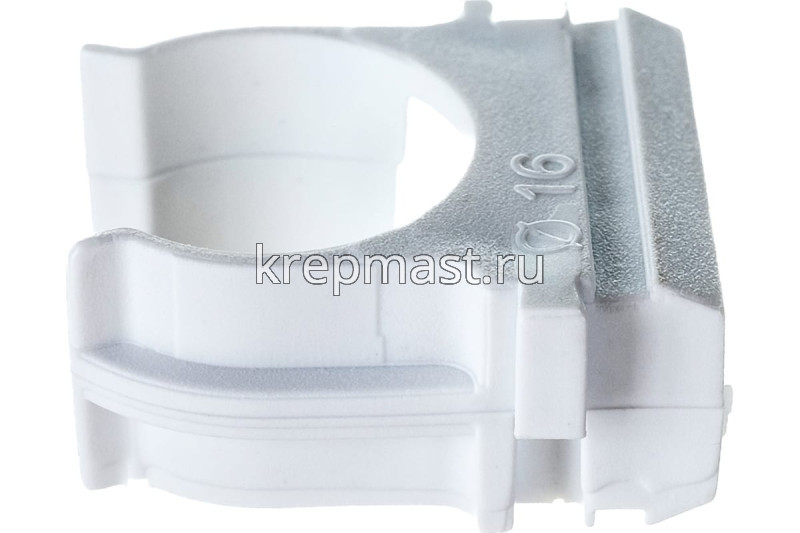 Крепёж-клипса для труб d16 мм используется для фиксации пластиковых труб к стене, потолку или полу. Для монтажа элемента предусмотрено технологическое отверстие под саморез. Клипсы состыковываются друг с другом с помощью фиксаторов.