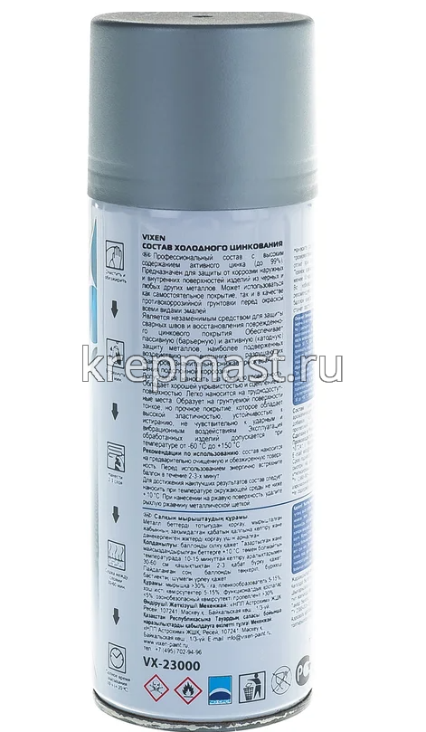 Состав холодного цинкования VIXEN 520мл аэрозоль - профессиональный состав с высоким содержанием электрохимически активного цинка (до 99%) для антикоррозийной обработки металлов, наиболее подверженных воздействию внешних разрушающих факторов – морской и пресной воды, водных растворов солей, а также этилового спирта.