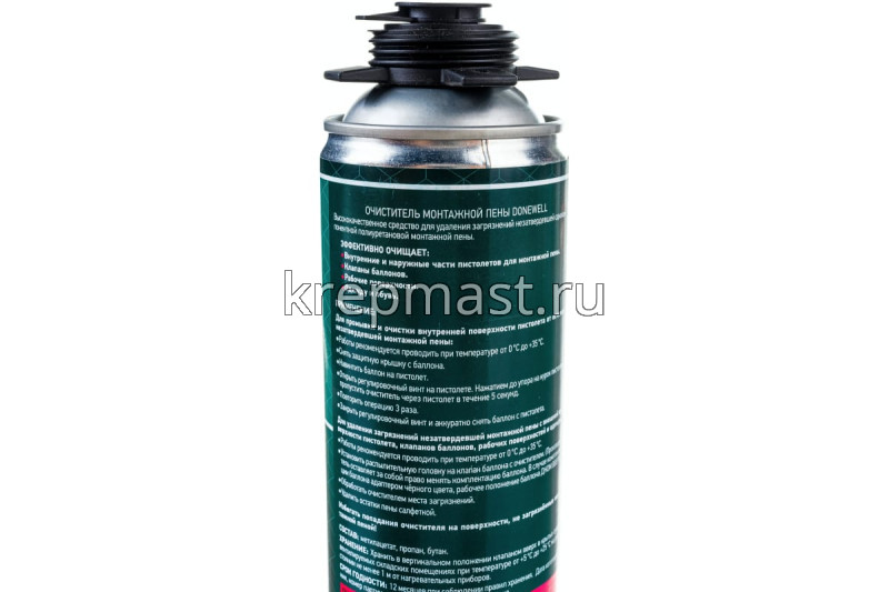 Очиститель пены DONEWELL 650мл устраняет частицы однокомпонентной и двухкомпонентной пены с кожи, одежды, и инструмента.